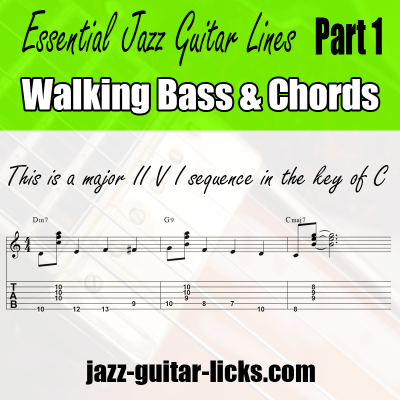 This jazz guitar method about walking bass lines and chords is available as a PDF files containing 35 exercises with tabs, analysis and audio files -