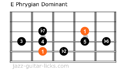 For example, the E Phrygian dominant scale would consist of the following notes: E, F, G#, A, B, C, D. You can use this scale to solo or create melodic lines over an E7b9 chord (in a minor 2 5 1 sequence for example).