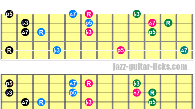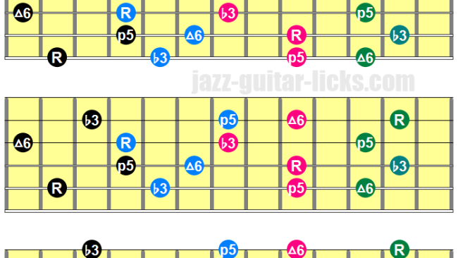 This jazz guitar lesson with diagrams and voicing charts will help you understand how to play minor major 7 chords on the guitar. -
