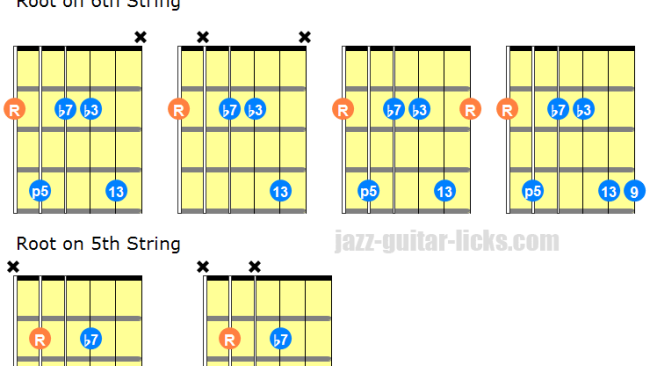 Half-Diminished Chords (m7b5) - Voicing Charts - Guitar Diagrams and Theory